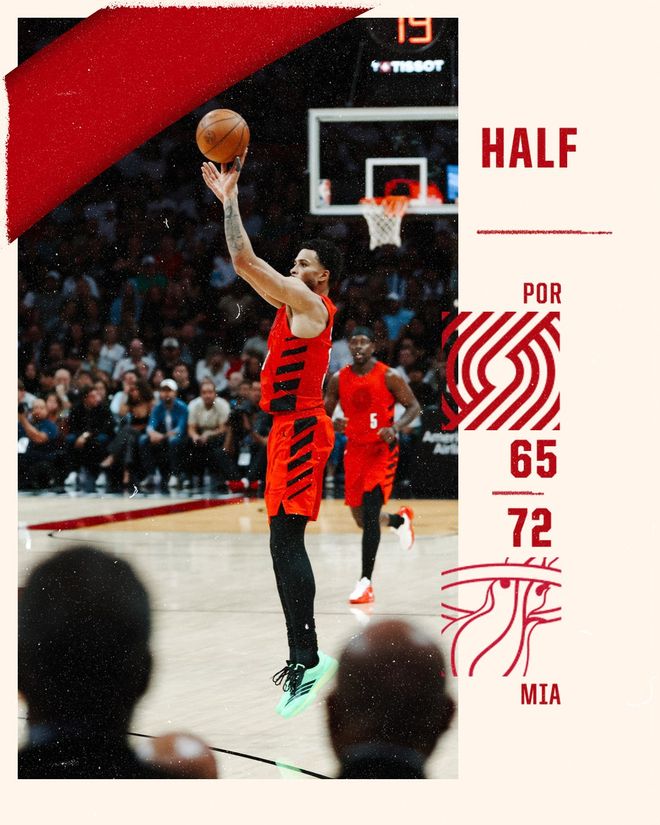 热火队的约维奇得到29分、9个篮板和7次助攻,鲍威尔得到22分,拉尔森得到16分和5次助攻,维金斯得到15分,哈克斯得到14分、12个篮板和7次助攻,史密斯得到13分、5个篮板和6次助攻。开拓者队的阿夫迪亚得到33分、11个篮板和8次助攻,夏普得到21分和9个篮板,霍勒迪得到18分、9个篮板和12次助攻,格兰特得到18分和4次助攻,克林根得到13分和6个篮板,卡马拉得到13分和7个篮板。
