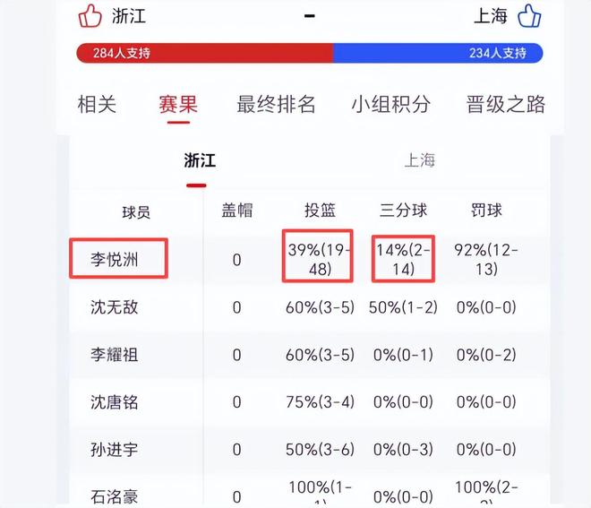 现代篮球,就看谁的三分准,谁的三分命中得多谁赢球的机会就大,高效的三分可以马上拉开比分,可以把对手击倒,今天上海队的三分球就比浙江队多,他们命中了15记三分,而浙江队只是命中了3记三分球。客观地说,李悦洲前两场三分命中率还是较高的,一场四成,一场五成,如果他今天不是死突,适当多投几个三分,或是创造机会让队友投一些空位三分,或许就有机会夺得铜牌了。个人觉得今天浙江队输球,李悦洲的责任较大。