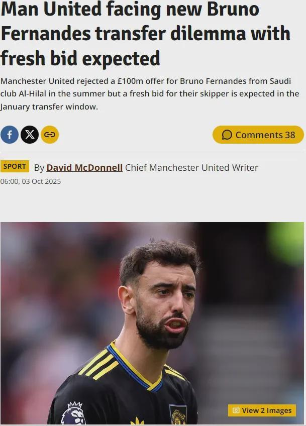 然而曼市晚报指出,沙特俱乐部很可能在一月再次求购B费,而葡萄牙人可能会索要70万英镑的周薪(免税)。