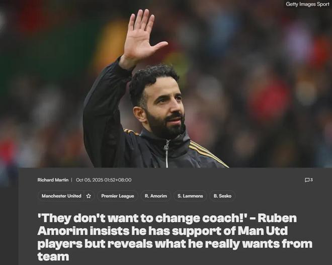 芒特赛后表示曼联球员都支持阿莫林,对此阿莫林表示:“我知道他们想拿出最好的表现,球员们不想一直换教练。但我们要展现在行动上,有时候看看我们的球队,我确信当我们最终复盘这些比赛时,球员们也知道有时候他们可以做得更好。