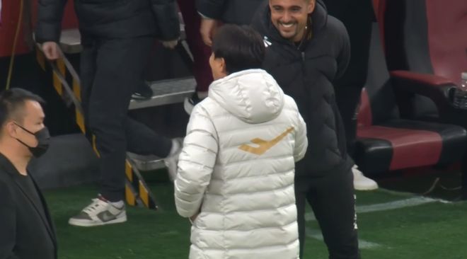 综合如上四点,海港是不是战略性放弃这场亚冠比赛,已经一目了然了。终场哨响后的一点也佐证了这点:海港输球后,队内主力射手莱昂纳多站在场边,表情轻松满脸喜悦地跟首尔FC主帅亲切握手寒暄(上图)。