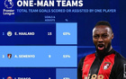 塞门约本赛季参与进球率英超第二,上赛季至今参与进球数第六 -